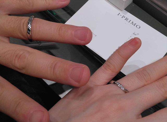 予算を先に話し合って決めていました。デザイン面などはとにかくシンプルなものを探していてこだわりがなかったので、お店にいって指にはめた感じの印象で決めることにしていました。色々と提案を受けた結果、指にはめた時にフィット感があるもので好みなデザインものが見つかり、デザインにこだわりがないと言っていたのにこれじゃないと嫌だという気持ちになってしまい私の好きなデザインの指輪になりました。結果としてすごく好みのものを購入できました